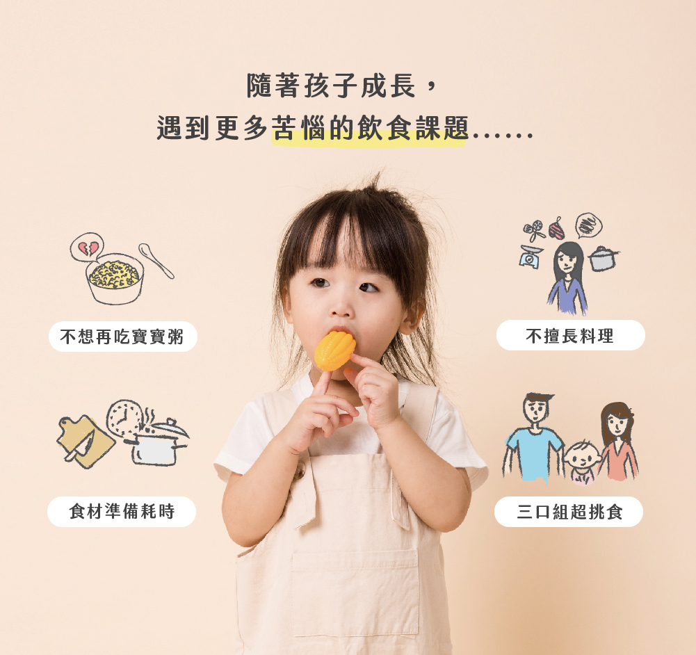 隨著孩子成長,不想再吃寶寶粥、吃外食又太高鹽高鈉造成身體負擔,但又沒時間餐餐現煮.....