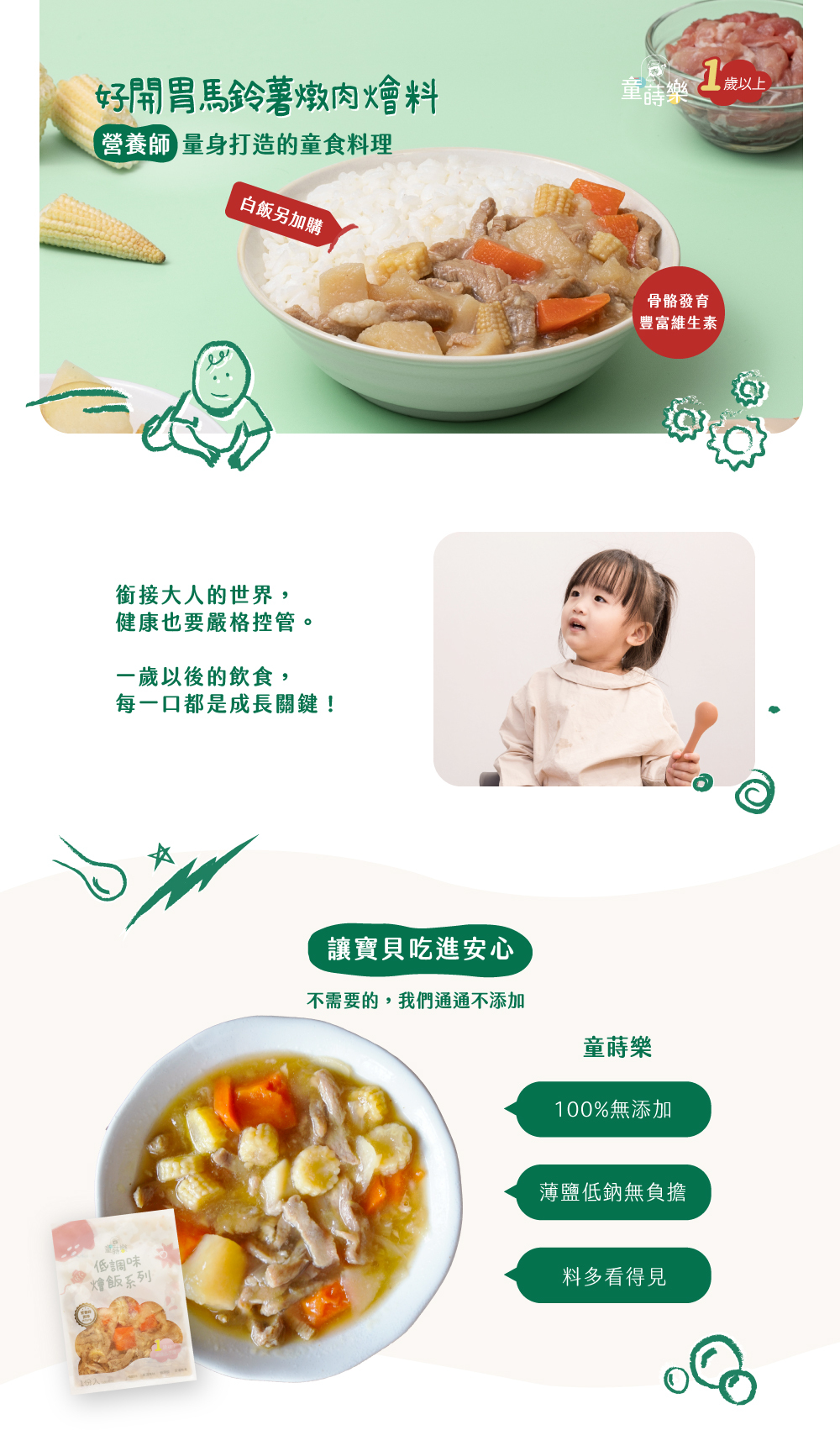 ☞減納30%:薄鹽薄糖低調味,不造成幼兒身體負擔